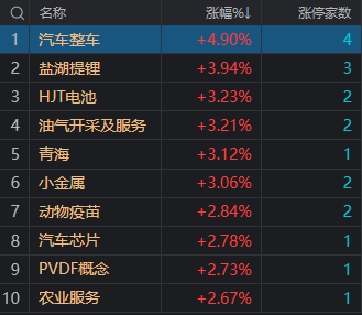 财联社5月17日电,大盘全天震荡走高,创业板指领涨。盘面上,赛道股再度活跃,新能源汽车、盐湖提锂、光伏、芯片等多个板块走强。油气板块全天强势,仁智股份涨停。下跌方面,医药相关板块继续低迷,近期活跃的基建、地产等板块也陷入调整。市场风格明显切换。此外高位股集体退潮,多只高位股掀跌停潮。总体上个股跌多涨少,两市超2500只个股下跌。沪深两市今日成交额7900亿,较上个交易日放量38亿。板块方面,汽车整车、盐湖提锂、HJT电池、油气开采等板块涨幅居前,新冠治疗、肝炎概念、农业种植、零售等板块跌幅居前。截止收盘,沪指涨0.65%,深成指涨1.23%,创业板指涨1.62%。北向资金全天净买入59.6亿元,其中沪股通净买入32.83亿元,深股通净买入26.77亿元。