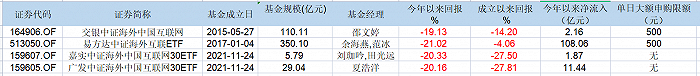 Wind数据显示,截至5月23日,上述四只ETF今年以来收益率均在-20%左右,但规模却不降反增。易方达中证海外互联ETF今年以来资金净流入达108.06亿元,广发中证海外中国互联网30ETF净流入资金为11.44亿元。