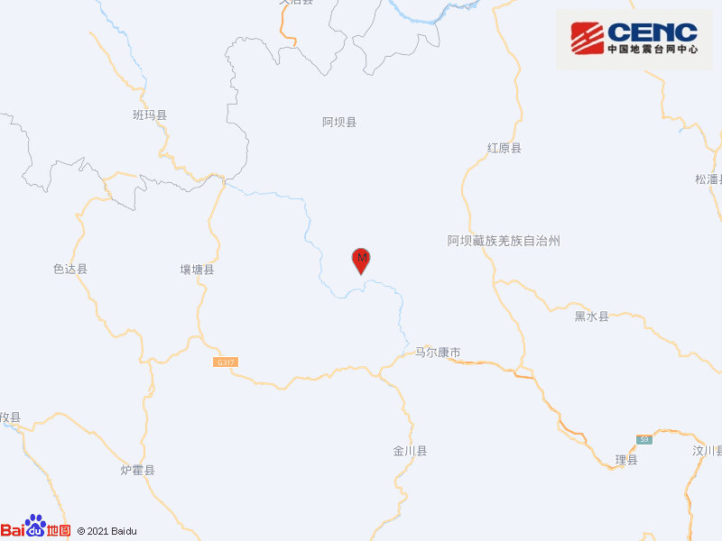 财联社6月10日电,中国地震台网正式测定:0时03分在四川阿坝州马尔康市(北纬32.27度,东经101.82度)发生5.8级地震,震源深度10千米。震中5公里范围内平均海拔约3691米。震中距马尔康市区55公里,距阿坝县71公里,距壤塘县79公里,距红原县89公里,距金川县91公里,距成都市280公里。震中附近人口不是特别密集,震中距最近的草登乡约6公里。