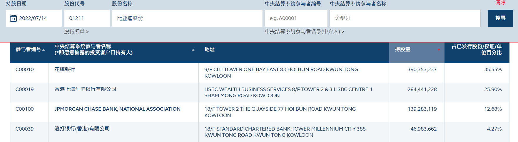 财联社7月15日电,7月11日花旗席位突增约2.25亿股比亚迪股份,市场怀疑是巴菲特旗下公司移仓后准备减持。截止发稿,花旗席位的比亚迪H股托管量较7月11日不减反增,包括伯克希尔在内的比亚迪大股东也未刊登股份变动公告。小财注:根据香港法规,持股5%以上的上市公司大股东,在其持股权益增减持达到一定标准时,需在3个交易日内申报。