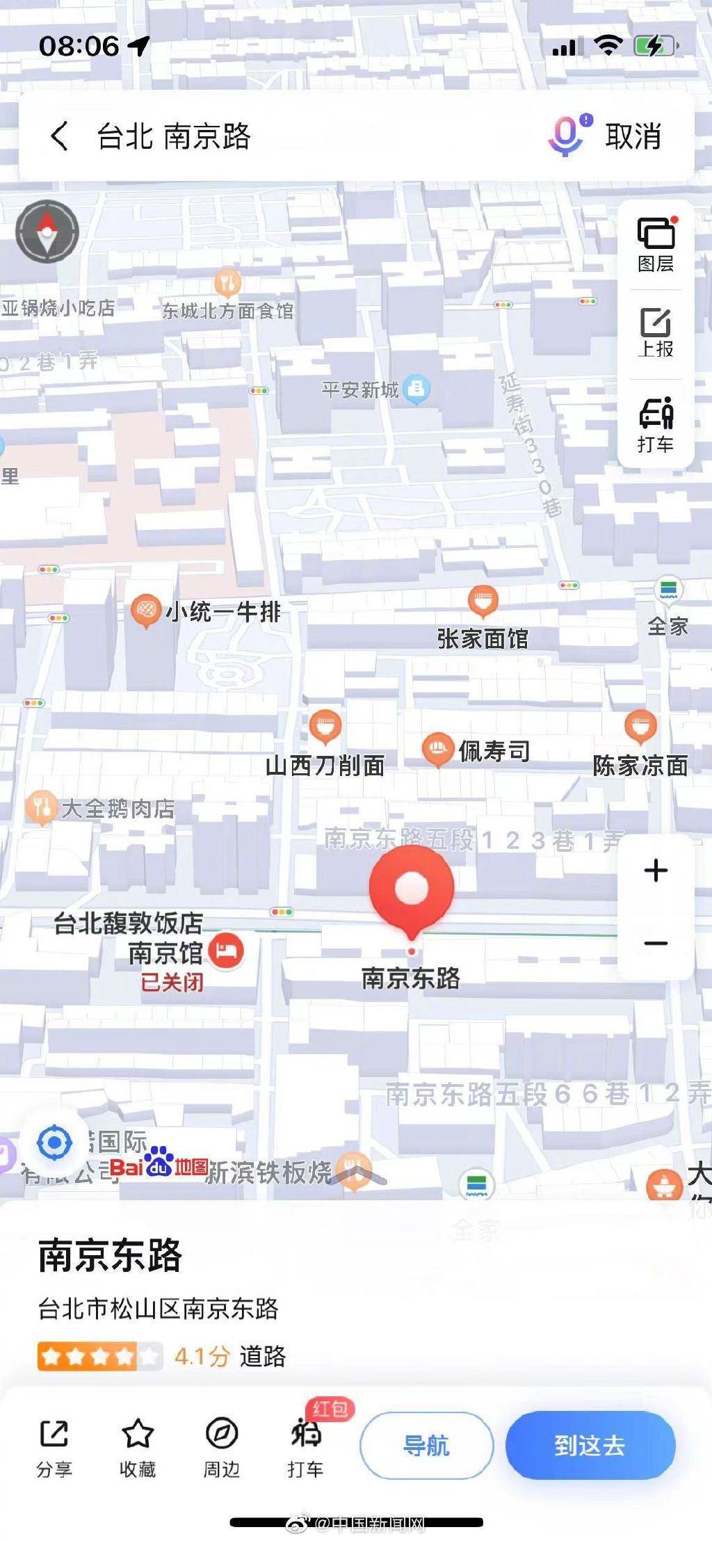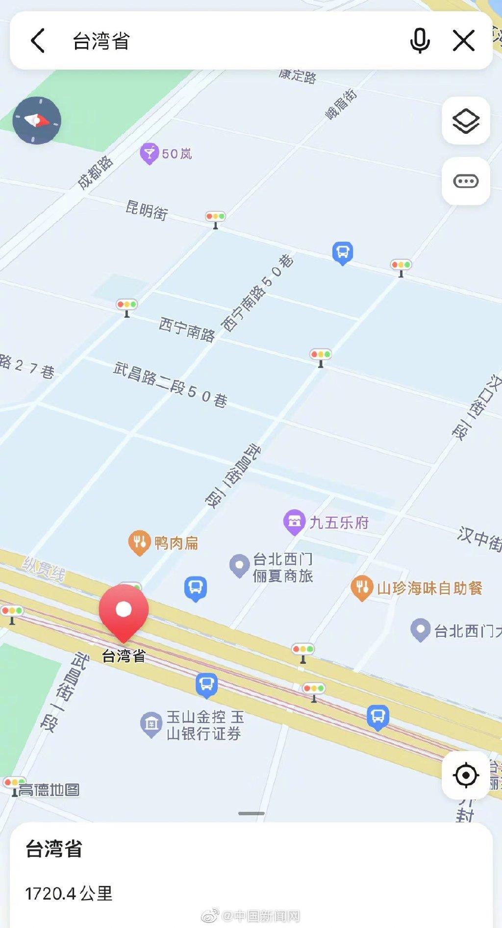 财联社8月5日电,不少网友5日在社交媒体表示,现在在地图搜索台湾省,能看到完整显示的台湾地图了,“精确到街道红绿灯”,且有网友说,很多台湾省街道用大陆城市命名。 (中国新闻网)