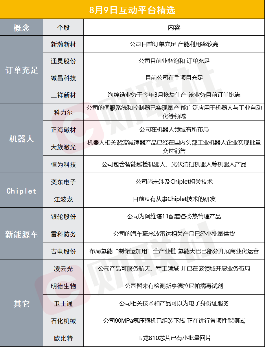 大盘全天低开后震荡走高,沪指涨0.32%录得4连阳,深成指涨0.24%,创业板指涨0.71%。板块方面,Chiplet、TOPCON电池、煤炭、燃气等板块涨幅居前。在互动平台上,银轮股份表示,公司为阿维塔11配套各类热管理产品;新集能源表示,下半年公司各生产矿井产能将逐步恢复,销售量也会恢复到正常水平;卫士通表示,公司相关技术和产品可以为电子身份证服务;凯龙股份表示,光伏胶钙产品正处于市场开发过程中,销量呈稳步提升态势;铜陵有色表示,二季度公司硫酸产品下游需求旺盛,销售均价同比有较大幅度增长;石化机械表示,公司90MPa氢压缩机已组装下线,正在进行各项性能测试;江波龙表示,目前没有从事Chiplet技术的研发。