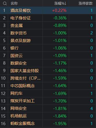 财联社10月28日电,大盘全天低开低走,创业板指领跌,沪指再创阶段调整新低。盘面上,信创概念股相对活跃,雄帝科技20CM涨停,格尔软件、美利云、直真科技涨停。下跌方面,赛道股继续调整,锂电池、光伏等方向领跌,多氟多、宝馨科技、山东章鼓等多股跌停,宁德时代跌超6%。养殖股再度下挫,湘佳股份、民和股份跌停。总体上个股跌多涨少,两市超4500只个股下跌,飘红个股不足400只,近90股跌停或跌超10%。沪深两市今日成交额9097亿,较上个交易日缩量142亿。板块方面,仅酒店板块上涨,贵金属、数字货币等板块相对抗跌,钠离子电池、养殖、一体化压铸、烟草等板块跌幅居前。截至收盘,沪指跌2.25%,深成指跌3.24%,创业板指跌3.71%。北向资金全天净卖出20.32亿元,其中沪股通净买入7.38亿元,深股通净卖出27.69亿元。