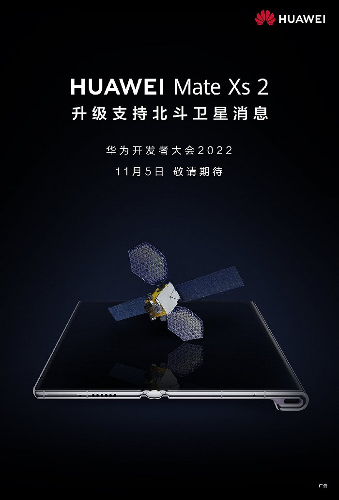 华为宣布Mate Xs 2手机将升级支持北斗卫星消息