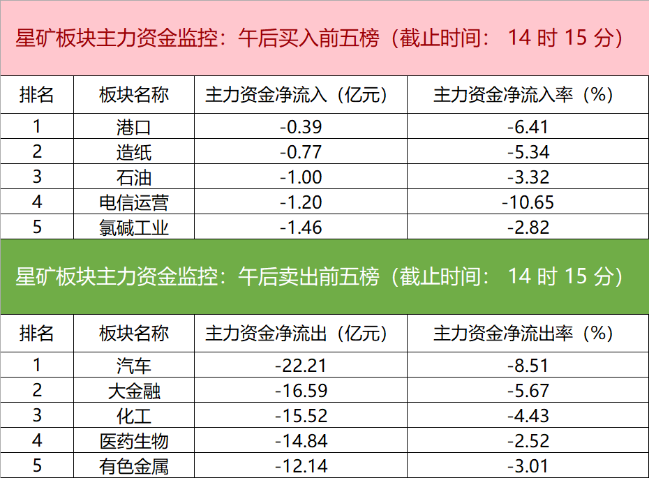 主力资金监控:今日无主力资金净流入的板块