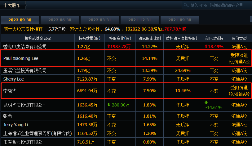 财联社11月21日电,恩捷股份公告,董事长Paul Xiaoming Lee和副董事长李晓华因相关事项被公安机关指定居所监视居住,相关事项尚待进一步调查。目前公司生产经营正常,各项工作有序开展。小财注:恩捷股份董事长Paul Xiaoming Lee和副董事长李晓华分列公司第二大和第五大股东,两者海外毕业院校和专业均一致,在红塔塑胶、德新纸业、成都红塑和创新彩印任职期间同样分别担任董事长和副董事长职务。