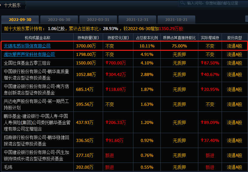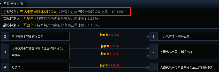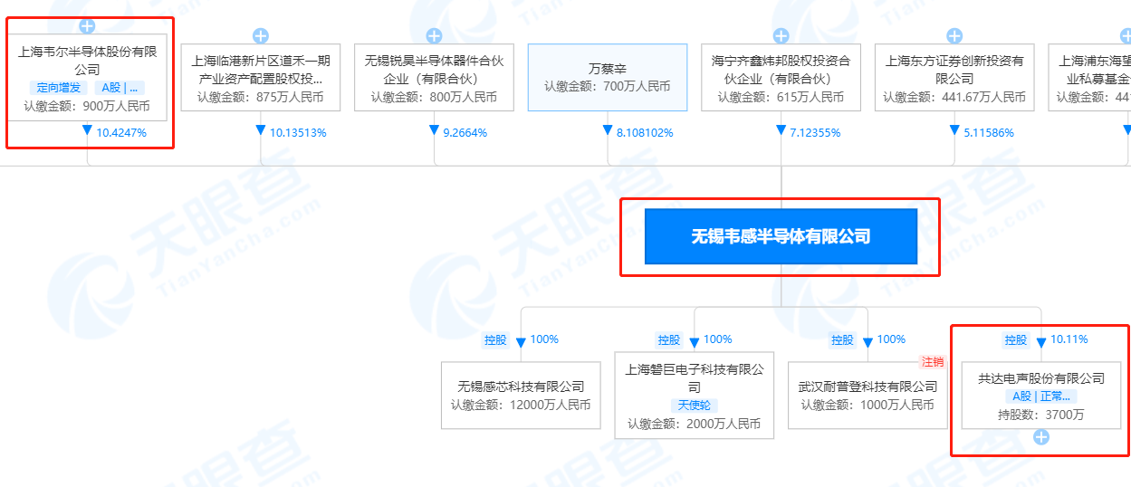 财联社11月22日电,共达电声公告,拟以9.73元/股定增募资不超过5亿元,用于智能汽车模组升级和扩产项目、MEMS传感器及模组升级和扩建项目、高端扬声器及模组升级项目、补充流动资金及偿还银行借款。本次非公开发行的发行对象为控股股东无锡韦感。小财注:共达电声第一大股东无锡韦感和韦尔股份有股权关联。