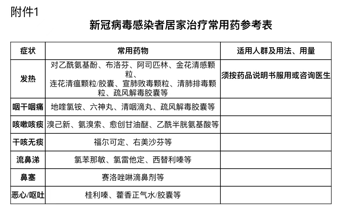 《新冠病毒感染者居家治疗常用药参考表》发布