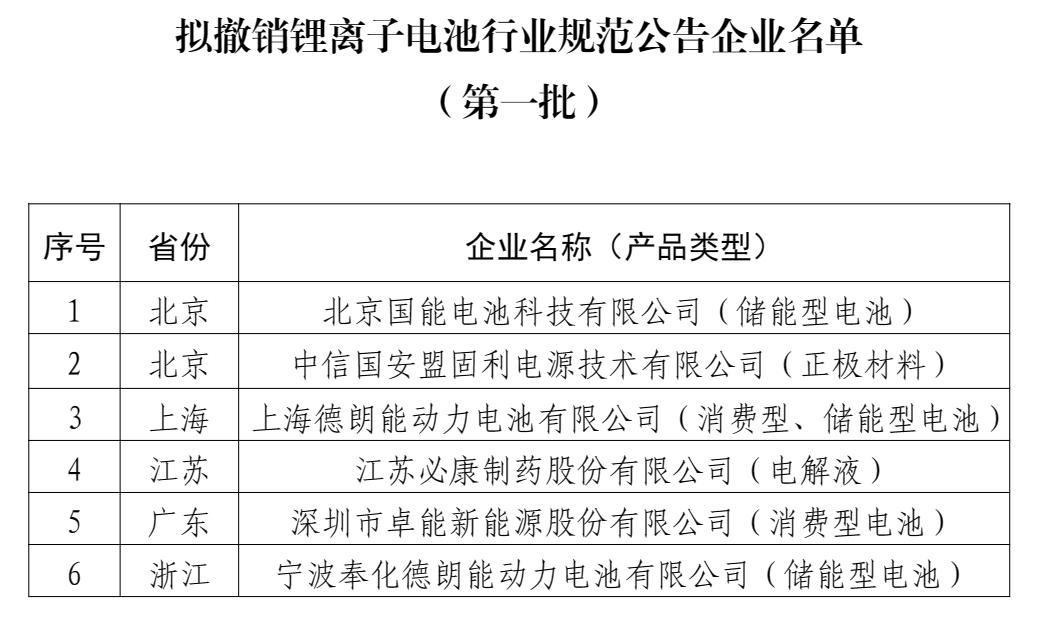 工信部公示拟撤销锂离子电池行业规范公告企业名单