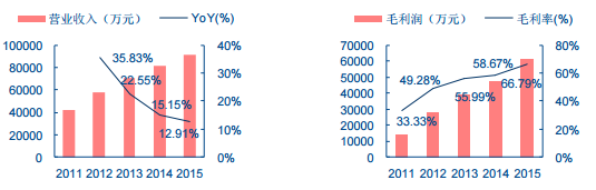 常山药业以肝素为主线,贯穿粗品加工,原料药生产、出口,肝素水针制剂生产、销售的 全产业链。目前,公司以肝素原料药、低分子肝素原料药和水针制剂构成的主营业务收入稳定 增长,2015 年收入达到 9.16 亿元,2011-2015 年 CAGR 达 21.28%。目前整体收入增速有所 放缓,但由于制剂占比提高带来毛利提升显著,2011-2015 年复合增长率达到 18.98%。