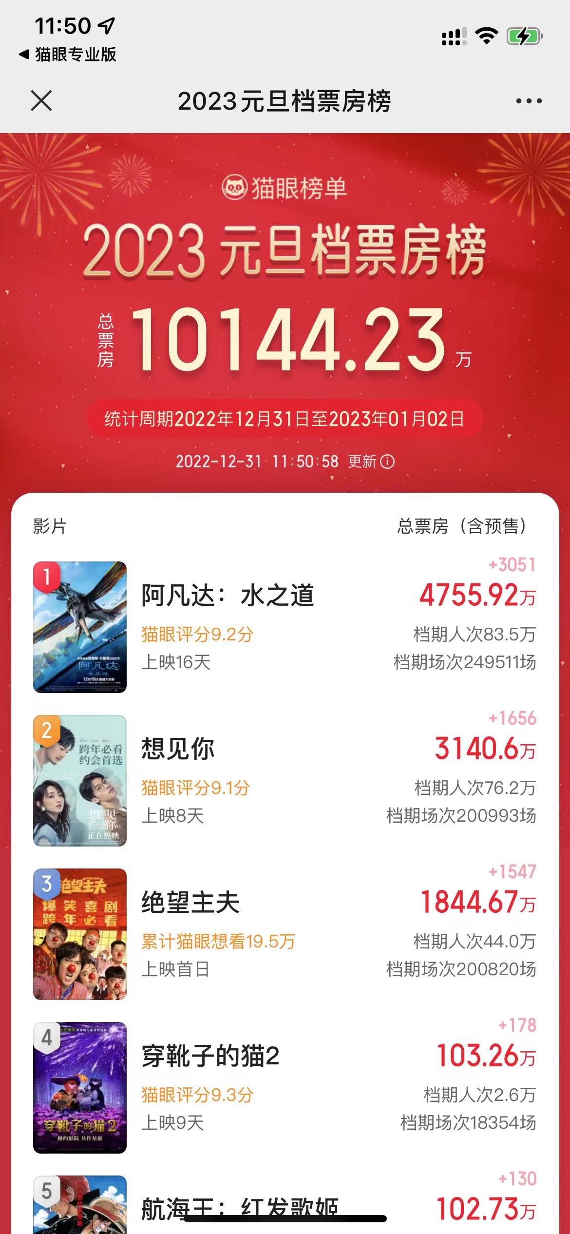 2023元旦档预售总票房破1亿元