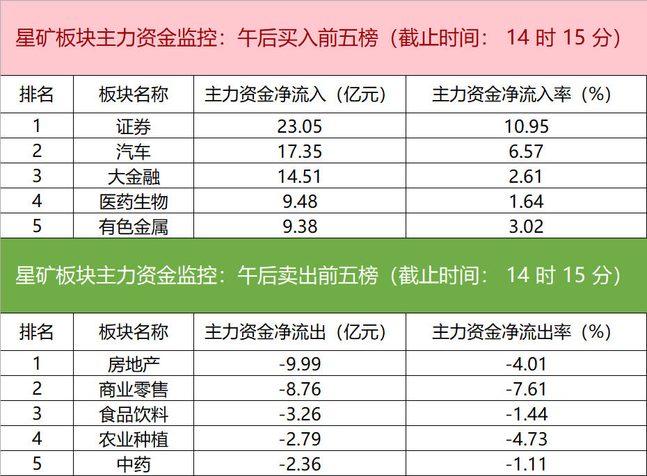 财联社1月5日电,财联社星矿数据显示,今日主力资金净流入证券、汽车、大金融等板块,净流出房地产、商业零售、食品饮料等板块,其中证券板块净流入23.05亿。个股方面,歌尔股份涨停,主力资金净买入18.97亿元,贵州茅台、东方财富、五粮液等获主力资金净流入居前;跨境通遭净卖出超4亿,巨轮智能、众生药业、久其软件等主力资金净流出额居前。