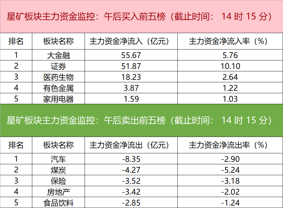 主力资金监控:大金融板块净流入超55亿