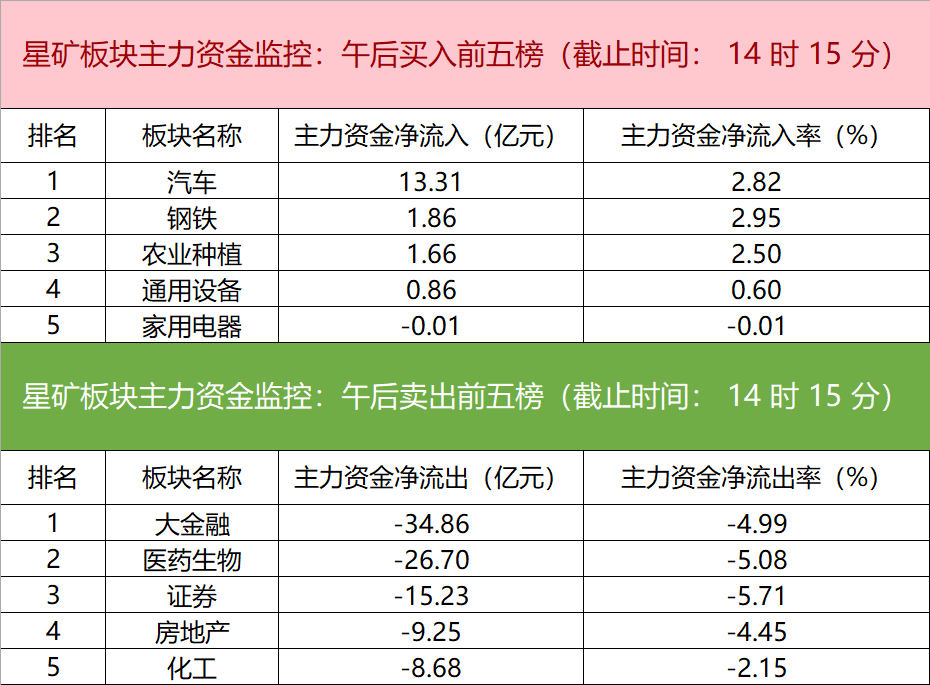 财联社1月30日电,财联社星矿数据显示,今日主力资金净流入汽车、钢铁、农业种植等板块,净流出大金融、医药生物、证券等板块,其中大金融板块净流出34.86亿。个股方面,科大讯飞涨停,主力资金净买入10.34亿元,五粮液、比亚迪、蓝思科技等获主力资金净流入居前;东方财富遭净卖出超3亿,复星医药、中国中免、中国电信等主力资金净流出额居前。