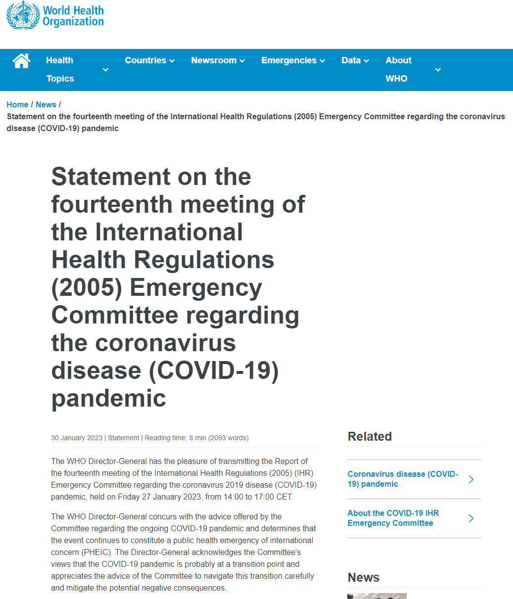 世卫最新声明:新冠继续构成国际关注的突发公共卫生事件