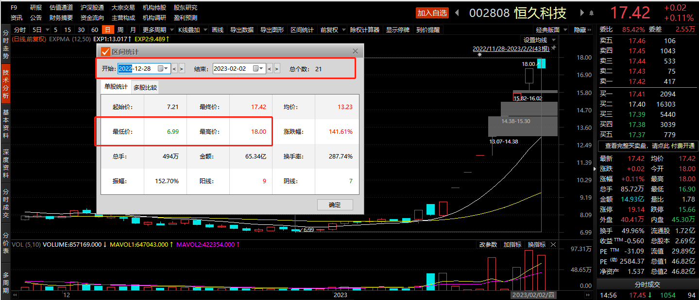 财联社2月2日电,恒久科技公告,股票异常波动期间,股东孙忠良先生(控股股东的一致行动人)存在违规减持公司股份的情形,其于2023年1月16日至2023年1月31日期间,共计减持公司0.61%股份。