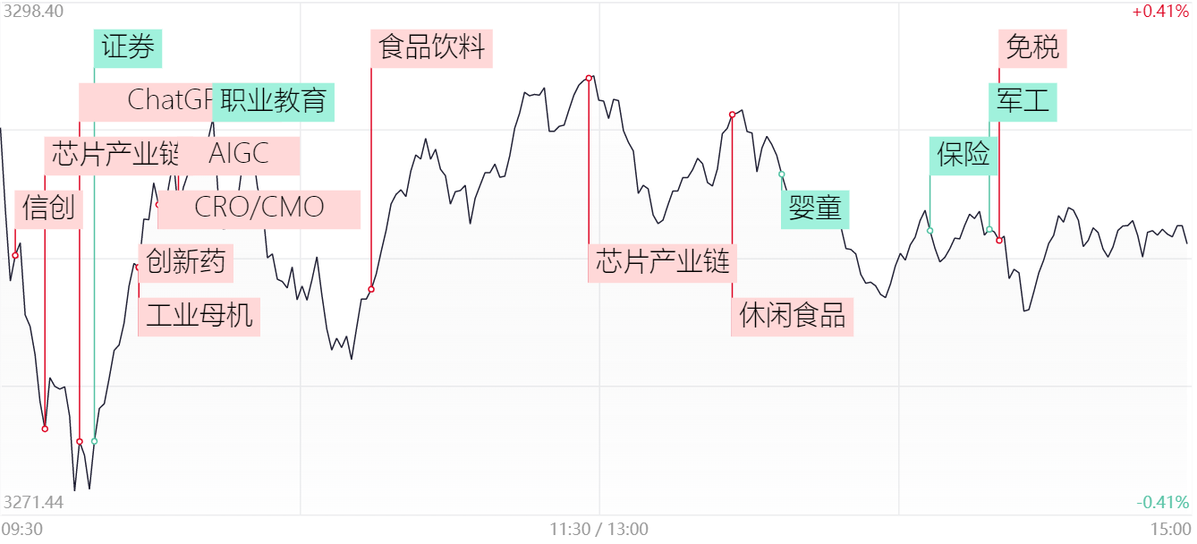 财联社2月3日电,上个交易日,三大指数集合竞价集体高开,盘中处于窄幅震荡状态,全天波动不大,沪指收涨0.02%,创业板指收跌0.44%。两市成交额合计10243亿,较前日增加197亿。1)以NPL、AIGC为首的人工智能概念股继续活跃,同为股份5连板,智能自控、汉王科技4连板,蓝英装备、焦点科技、泰尔股份、地铁设计、达华智能、宏英智能涨停。板块再度分化,前排标的开始掉队,资金继续挖掘低位个股,并且扩散到算力芯片方向。从情绪端上,今天应该会加大分歧,可以留意调整之后的反复机会。2)半导体芯片方向盘中走强,先锋电子3连板,同兴达2连板,华力创通、亿通科技、凯美特气、飞龙股份、瑞芯微涨停。从细分上看主要有两个方向,第一个方向是开盘以寒武纪为首的算力芯片,主要是炒人工智能的情绪扩散,第二个方向则是以北方华创、龙芯中科等为首的设备材料股。3)以预制菜为首的食品消费股也有不错表现,千味央厨、味知香、步步高、香飘飘、燕京啤酒、中葡股份涨停。该方向暂且以轮动反抽看待,主要是数字经济、光伏、汽车产业链等比较活跃的大板块纷纷回调,近期横盘的食品消费股则成了资金避险区域。4)信创、数字经济方向反复活跃,中国长城、华塑控股、云鼎科技、恒银科技、南兴股份、中远海科、浙江富润、三人行涨停。该方向核心是中国长城,后排的中国软件、深桑达、易华录等均是冲高回落。这边需要留意中国长城的强度,如果表现超预期较大概率会往量子芯片方向延伸。