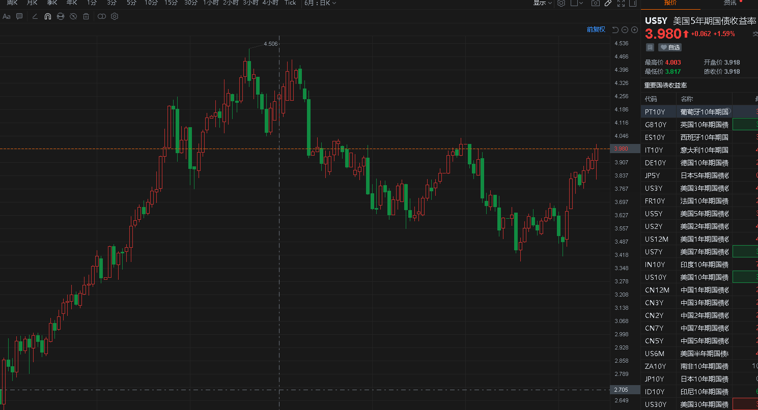 美国5年期国债收益率自去年12月30日以来首次突破4%