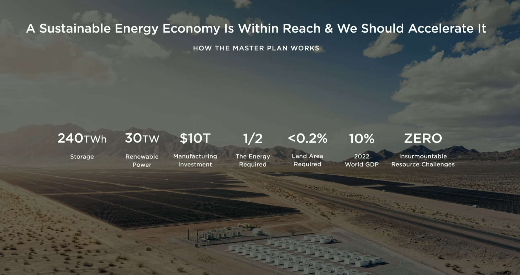 马斯克“宏图计划3”:储能240 TWH、可再生电力30 TW 对制造的投资需要达到10万亿美元