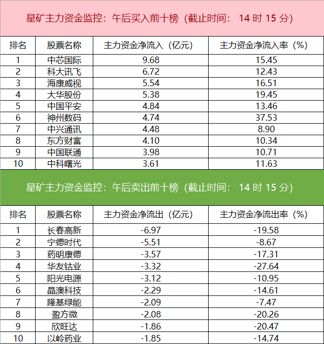 财联社3月17日电,财联社星矿数据显示,今日主力资金净流入大金融、证券、天然气等板块,净流出医药生物、中药、有色金属等板块,其中医药生物板块净流出35.65亿。个股方面,中芯国际大涨,主力资金净买入9.68亿元,科大讯飞、海康威视、大华股份等获主力资金净流入居前;长春高新遭净卖出超6亿,宁德时代、药明康德、华友钴业等主力资金净流出额居前。