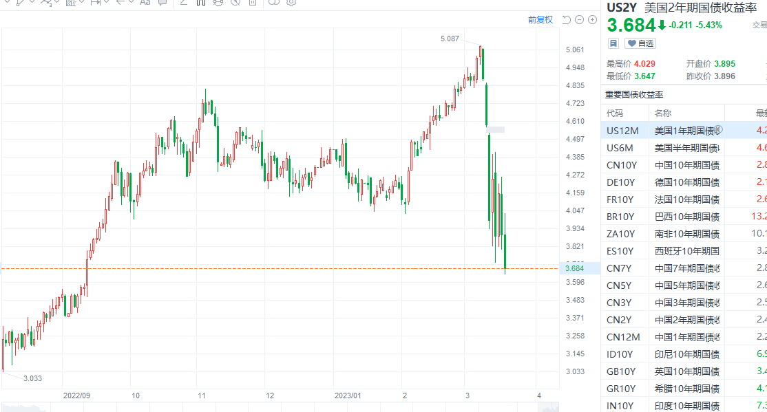 美国2年期、5年期国债收益率均创2022年9月以来新低