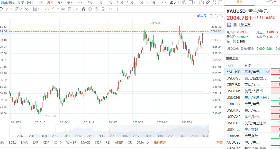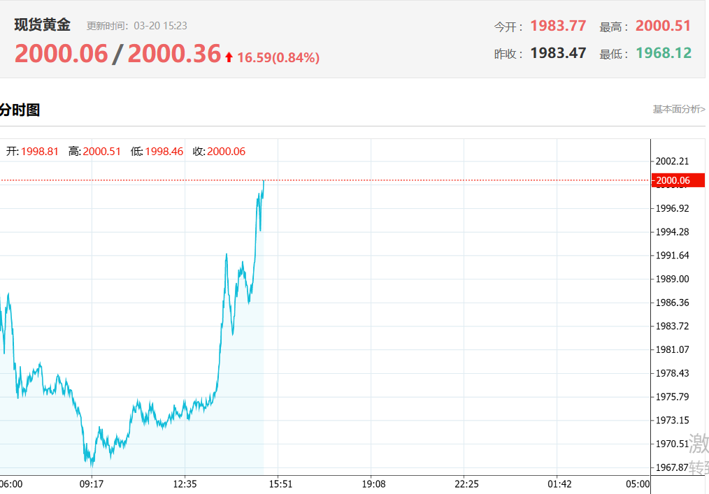 财联社3月20日电,现货黄金自2022年3月以来首次突破2000美元/盎司。