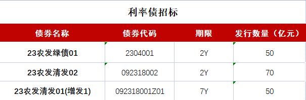 中国农业发展银行将于09:00-10:00、14:00-15:00招标发行三期金融债 期限2-7Y不等