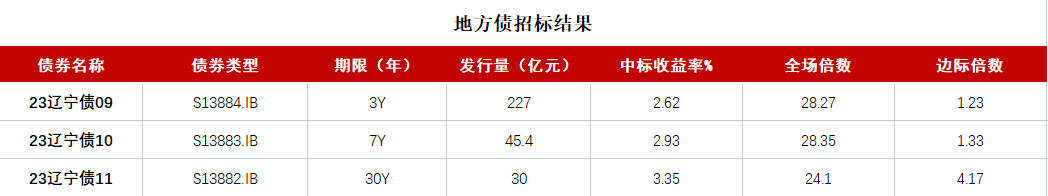 辽宁省政府三期地方债已招标结束,全场投标倍数均在24之上