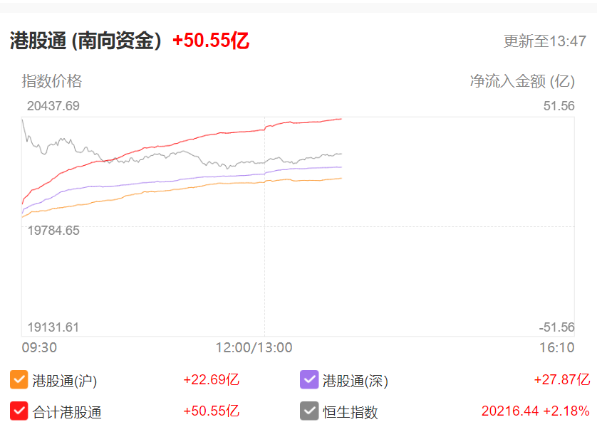 财联社3月29日电,截至发稿,南向资金净流入超50亿港元。