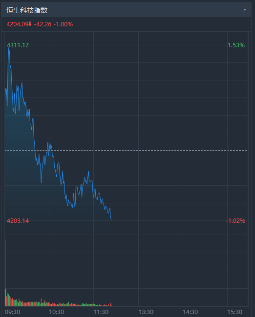 财联社3月30日电,恒生科技指数跌幅扩大至1%,此前一度涨1.5%。阿里健康跌超9%,京东健康跌超6%。