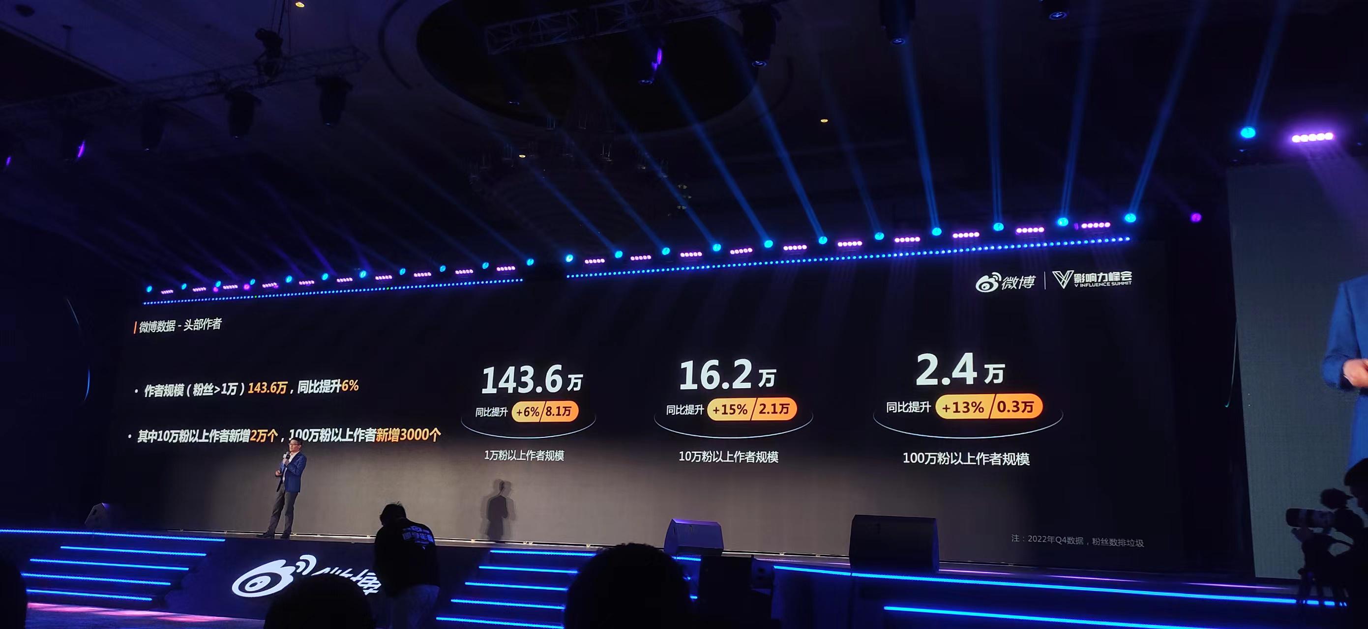 2022年Q4微博粉丝数超1万的作者达143.6万 同比增加6%