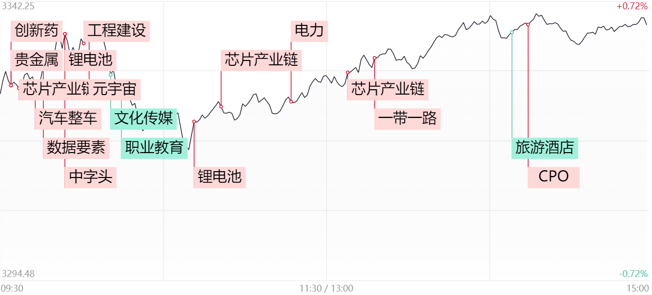 上个交易日,三大股指全线高开,早盘冲高回落,午后企稳并再度震荡走高,科创50指数放量反包,收盘大涨3.28%。截至收盘,沪指涨0.6%,深成指涨0.51%,创业板指涨0.93%。沪深两市成交额11150亿。1)半导体产业链大放异彩,其中上游设备、材料方向领涨,耐科装备、联动科技、拓荆科技、经纬辉开20CM涨停,金海通、北方华创、赛腾股份、至纯科技、华亚智能、盛剑环境、晶方科技涨停。半导体设备龙头北方华创一季度净利润超市场预期,半导体设备国产化率保持显著增长趋势。2)大基建板块近期反复活跃,中工国际、陕西建工、华建集团涨停,西藏天路、上海港湾、中钢国际、中国中铁大涨超5%。业内人士预计,今年基建投资增速有望保持较高水平,一季度或达10%左右。3)资源股大面积走强,其中黄金、锂矿方向领涨。黄金板块中四川黄金、中润资源、鹏欣资源涨停,恒邦股份、紫金矿业、明牌珠宝涨超4%。锂矿板块中,永兴材料涨停,天华新能涨近10%,中矿资源、天齐锂业、赣锋锂业、盛新锂能大涨超5%。4)人工智能板块分化态势依旧,电商、网游、传媒等应用方向出现大幅回调,Auto-GPT细分以及部分低位股异军突起,梦网科技、齐心集团涨停,银江技术、法本信息、世纪天鸿涨超10%。国盛证券研报指出,Auto-GPT的出现,AGI赛道将迅速开启生态构建大时代。