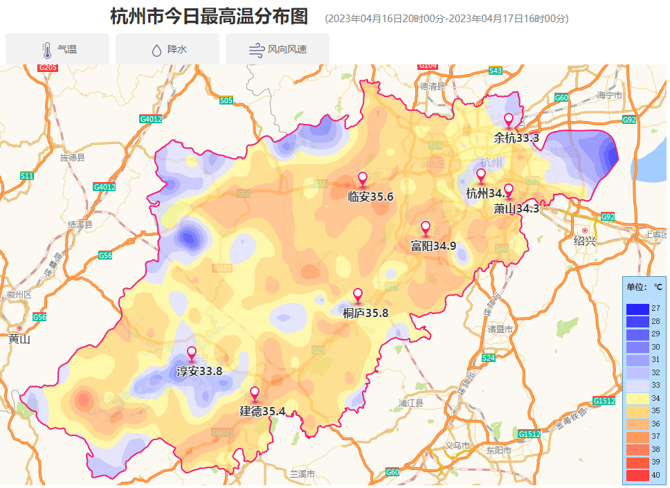 财联社4月17日电,截止17日下午4:20,杭州主城区实时气温突破35℃高温线,热出了全新纪录。气象数据显示,今天以前,杭州本站4月17日的历史最高气温为33.8℃,出现在1952年。今天的最高气温不仅热破了同期纪录,还打破了有气象记录以来4月最高气温纪录。