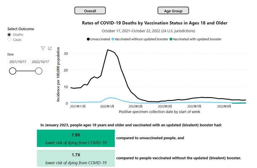 美国CDC的数据表明,与没有实现完全接种的人相比,接种过2针以上疫苗或加强剂的人死于新冠的比率更低,而未接种疫苗的个体死于新冠的风险要比接种了至少一个初级系列疫苗的个体高得多。