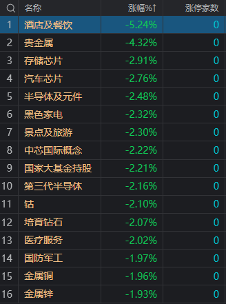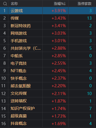 财联社4月24日电,大盘全天震荡走低延续跌势,沪指失守3300点,创业板指领跌。盘面上,AI概念股展开反弹,传媒、游戏股掀涨停潮,星辉娱乐、世纪天鸿20CM涨停,中国出版、电魂网络、读者传媒等涨停;CPO概念股再度活跃,德科立、东田微20CM涨停,永鼎股份、烽火通信涨停。新冠药概念股全天强势,拓新药业20CM涨停,翰宇药业涨超10%,盘龙药业涨停。下跌方面,半导体板块陷入调整,神工股份20CM跌停,圣邦股份跌超10%。总体上个股跌多涨少,两市超3000只个股下跌,逾50股跌超9%。沪深两市今日成交额10834亿,较上个交易日缩量1344亿。板块方面,新冠药、传媒、游戏、CPO等板块涨幅居前,存储芯片、半导体、旅游、军工等板块跌幅居前。截至收盘,沪指跌0.78%,深成指跌1.17%,创业板指跌1.71%。北向资金全天净卖出38.28亿元,其中沪股通净买入2.08亿元,深股通净卖出40.36亿元。