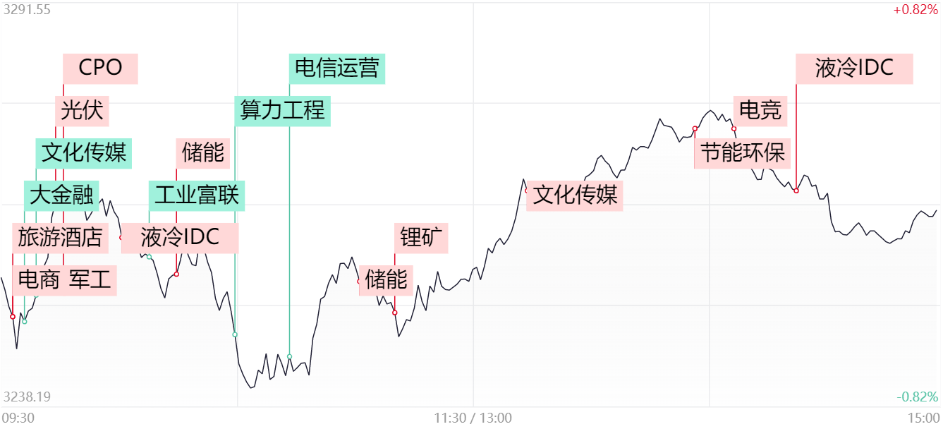 财联社4月27日电,上个交易日,三大指数集体低开,早盘新能源赛道引领股指企稳回升,午后人工智能主线振幅加剧,前期高位人气股尾盘批量跳水拖累沪指再度翻绿,截至收盘,沪指跌0.02%,深成指涨0.33%,创业板指涨1.54%。沪深两市成交额11222亿,较上个交易日缩量117亿。1)新能源赛道展开绝地反击,储能板块大涨,昱能科技、禾迈股份20CM涨停,科士达、德业股份涨停,派能科技、固德威、上能电气、盛弘股份、南网科技等多股涨超10%。光伏产业链同样呈现普涨态势,TOPCon、HJT电池方向领涨,联得装备20CM涨停,爱旭股份、钧达股份、联泓新科涨停,金辰股份、中信博、晶澳科技、东方日升等多股大涨超5%。2)医疗服务、医疗器械板块近期屡有不俗表现,何氏眼科、普瑞眼科、伟思医疗20CM涨停,南微医学、可孚医疗、华厦眼科涨超10%。消息面上,近期多家眼科医疗为首的医疗保健公司一季报普遍同比大幅增长。3)游戏、传媒、电商等应用端继续成为人工智能板块中的资金主攻方向,新华文轩3连板,南方传媒6天5板,中国出版10天5板,焦点科技7天4板,日播时尚2连板,迅游科技20CM涨停,宝通科技、星辉娱乐涨超10%。需要重视的是,文化传媒指数这波主升中少有突破日线三连阳的情形,盘中尽管再度上演分歧转一致,但不少后排股已经显露疲态。4)算力产业链内部分化加剧,资金聚焦液冷数据中心方向,北交所曙光数创30CM涨停,高澜股份20CM涨停,超讯通信7天4板,中石科技、网宿科技、依米康涨超10%。