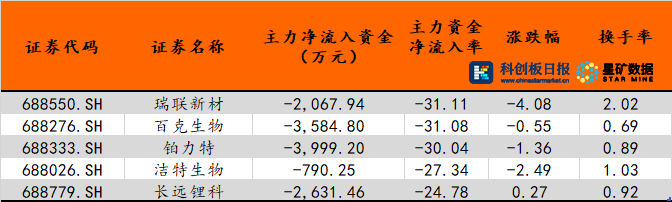数据|科创板主力资金净流出322股 瑞联新材流出率最高