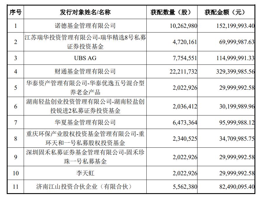 飞荣达:披露定增结果 诺德基金、UBS AG及财通基金等参投