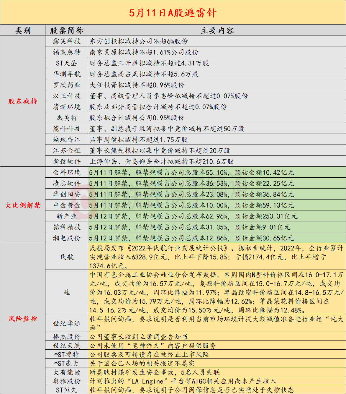 5月11日股市避雷针