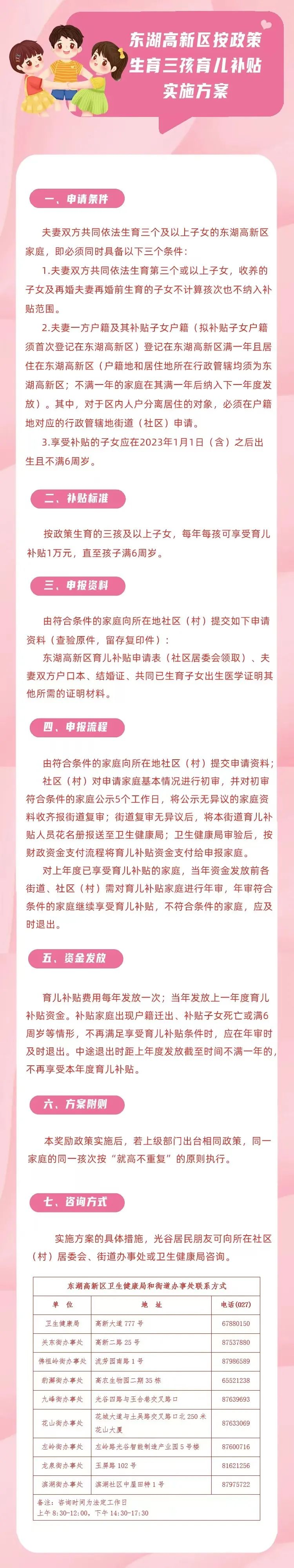武汉东湖高新区:按政策生育的三孩及以上子女家庭 每孩最高补贴6万元