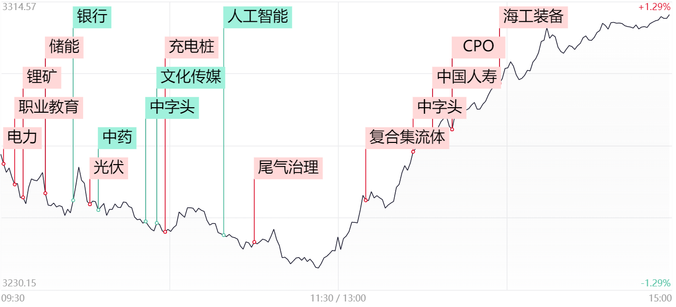 财联社5月16日电,上个交易日,三大指数早盘开盘涨跌互现,中字头、大金融为首的中特估板块午后展开绝地反击,早盘一度跌超1%的沪指走出V型反转,截至收盘,沪指涨1.17%,深成指涨1.57%,创业板指涨2.11%。沪深两市今日成交额9383亿,较上周五放量902亿。1)充电桩板块延续上周强势,英可瑞、万马股份4天2板,北巴传媒3天2板,祥明智能、金智科技涨停,金冠电气、双杰电气、达志科技涨超10%。消息面上,中汽协近日发布的数据显示,今年4月,我国新增6.7万台公共充电桩,同比增长52.0%。2)光伏、储能等新能源赛道整体反弹不俗,钧达股份、晶澳科技、意华股份、科远智慧、万胜智能涨停,金刚光伏涨超10%。长江证券重申当前光伏板块即将逐步进入量利向上的加速兑现期。3)锂矿板块反弹势头凌厉,天齐锂业、中矿资源、融捷股份、盛新锂能、永兴材料涨停,天华新能涨超10%。4月27日至今,电池级碳酸锂价格涨幅累计达到47.2%。部分正极厂5月排产环比+20%以上,电池厂积极备货,多环节材料价格企稳回升。4)中字头板块午后展开绝地反击,中信金属6天3板,中船汉光20CM涨停,中国船舶、中船防务涨停,中船应急大涨12%。预计5-6月将迎来央企ETF密集发行期,增量资金可期。