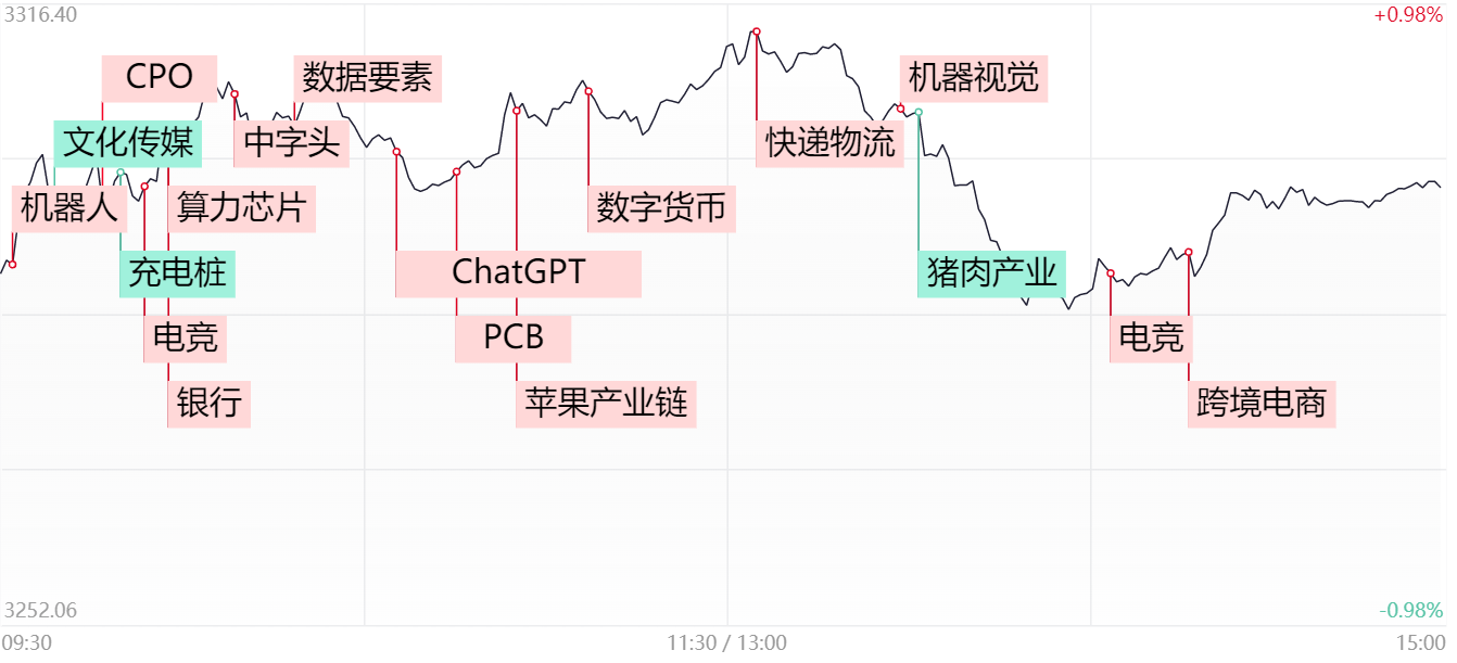 财联社5月19日电,上个交易日,三大指数集体高开,新能源赛道走弱持续拖累创业板指数,截至收盘,沪指涨0.4%,深成指跌0.12%,创业板指跌0.68%。两市成交金额8799亿,较前日放量985亿。1)机器人板块早盘强势崛起,奥比中光、优德精密、南方精工、远大智能、卓翼科技、中大力德、鸣志电器、爱仕达、合力泰等20余家个股涨停或涨幅超过10%。英伟达创始人兼首席执行官黄仁勋在ITF World 在2023年半导体大会上指出,人工智能下一个浪潮将是"具身智能"。2)CPO板块再掀火爆涨势,中际旭创涨停并创出历史新高,另外源杰科技、新易盛、九联科技、通鼎互联、永鼎股份、剑桥科技、华工科技、光迅科技、特发信息等十余家成分股涨停或涨超10%。消息面上,近期光模块板块加单催化较多,自3月以来北美厂商已多次追加800G光模块订单,追加频率及数量超市场预期。3)人工智能板块迎来大面积修复,其中传媒、游戏和电商为代表的应用端和数据要素方向表现活跃,金桥信息2连板,华凯易佰、拓尔思、冰川网络、力盛体育、中远海科、南方传媒等纷纷涨停,银江技术、云天励飞、宝兰德等十余家成分股大涨超10%。4)苹果产业链盘中表现不俗,澄天伟业、依顿电子、易德龙涨停,田中精机、荣旗科技、奥普特涨超10%。消息面上,iPhone 15系列最快会在今年6月份开始量产,按照供应链最新消息称,初期备货量维持去年高位水准,8500万部起步,最多能到1亿台。