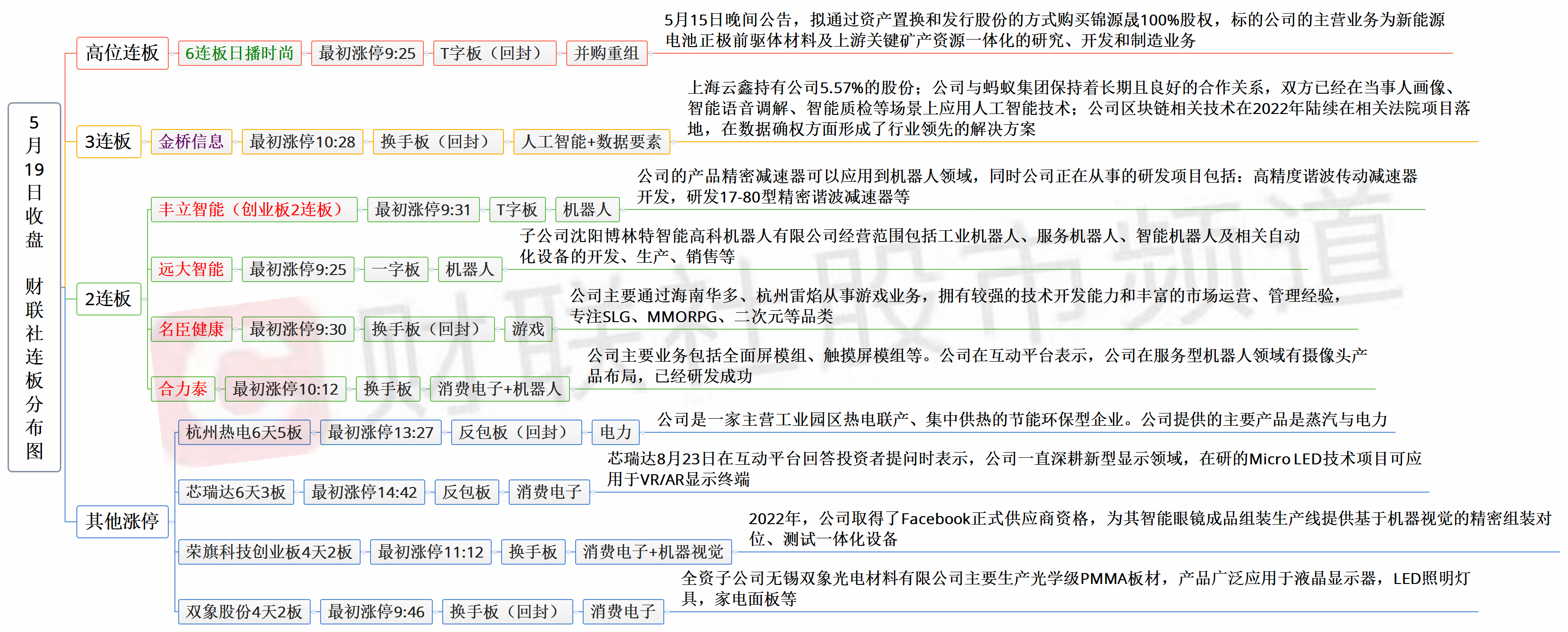 今日共28股涨停,连板股总数6只,上一交易日共44股涨停,涨停股晋级率13.63%(不含ST股、退市股及未开板新股)。个股方面,高位股接力情况有所改善,日播时尚早盘开板后迅速回封,成功晋级6连板,杭州热电大幅低开后仍完成反包,录得6天5板,此外金桥信息3连板,股价创下近期新高。板块方面,近期充分调整的低位板块更受资金青睐,同样经历了昨日的大涨后,CPO板块低开低走“闷人”,相反机器人板块延续了一定涨势,丰立智能、远大智能、合力泰2连板;同样低位的消费电子与存储芯片板块受到利好消息刺激也有不俗表现,市场主题投资氛围正在减弱,逐步进入板块轮动状态。