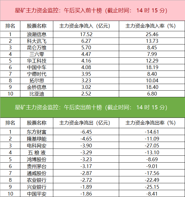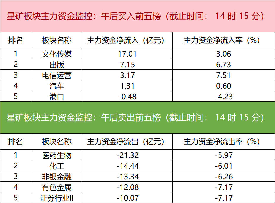 财联社5月30日电,财联社星矿数据显示,今日主力资金净流入文化传媒、出版、电信运营等板块,净流出医药生物、化工、非银金融等板块,其中医药生物板块净流出21.32亿。个股方面,浪潮信息涨停,主力资金净买入17.52亿元,科大讯飞、昆仑万维、三六零等获主力资金净流入居前;东方财富遭净卖出超6亿,隆基绿能、电科网安、五粮液等主力资金净流出额居前。