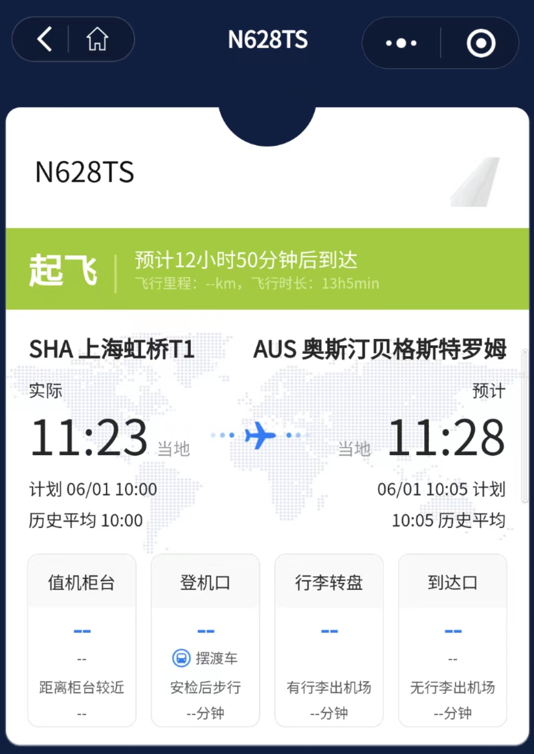财联社6月1日电,据“飞常准”APP显示,上午11时23分,特斯拉CEO马斯克的私人飞机(注册号:N628TS)已经离开上海虹桥机场,前往美国奥斯汀贝格斯特罗姆机场。美国得克萨斯州奥斯汀是特斯拉总部所在地。