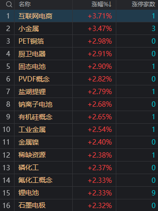 财联社6月2日电,市场早盘延续反弹,三大指数均小幅上涨,深成指领涨。盘面上,新能源赛道股迎来反弹,锂电池方向领涨,融捷股份、盛新锂能、吉翔股份涨停。周期股震荡走强,化工方向领涨,宏柏新材涨停,远兴能源、川能动力涨超5%。房地产板块盘中异动,京投发展、电子城涨停。AI概念股走势分化,电商概念股大涨,华凯易佰涨超10%,焦点科技涨停。下跌方面,脑机概念股股陷入调整,爱朋医疗跌超10%,新智认知跌停。总体上个股涨多跌少,两市超3500只个上涨。沪深两市今日成交额5986亿,较上个交易日缩量105亿。板块方面,电商、锂矿、复合集流体、有机硅等板块涨幅居前,脑机接口、旅游、存储芯片、教育等板块跌幅居前。截至上午收盘,沪指涨0.76%,深成指涨1.46%,创业板指涨1.43%。北向资金方面,沪股通早盘净流入36.93亿,深股通早盘净流入45.51亿。