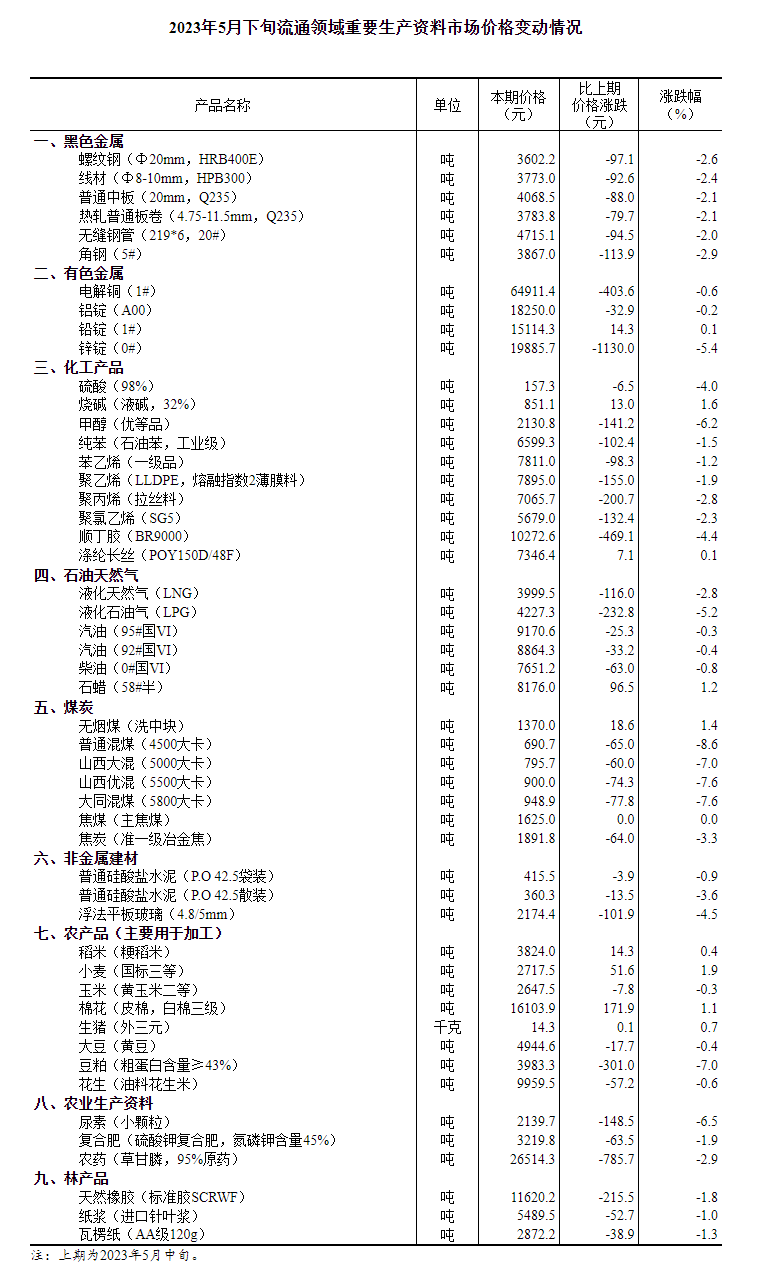 财联社6月4日电,国家统计局数据显示,据对全国流通领域9大类50种重要生产资料市场价格的监测显示,2023年5月下旬与5月中旬相比,9种产品价格上涨,40种下降,1种持平。其中,生猪(外三元)价格为14.3元/千克,环比上涨0.7%。