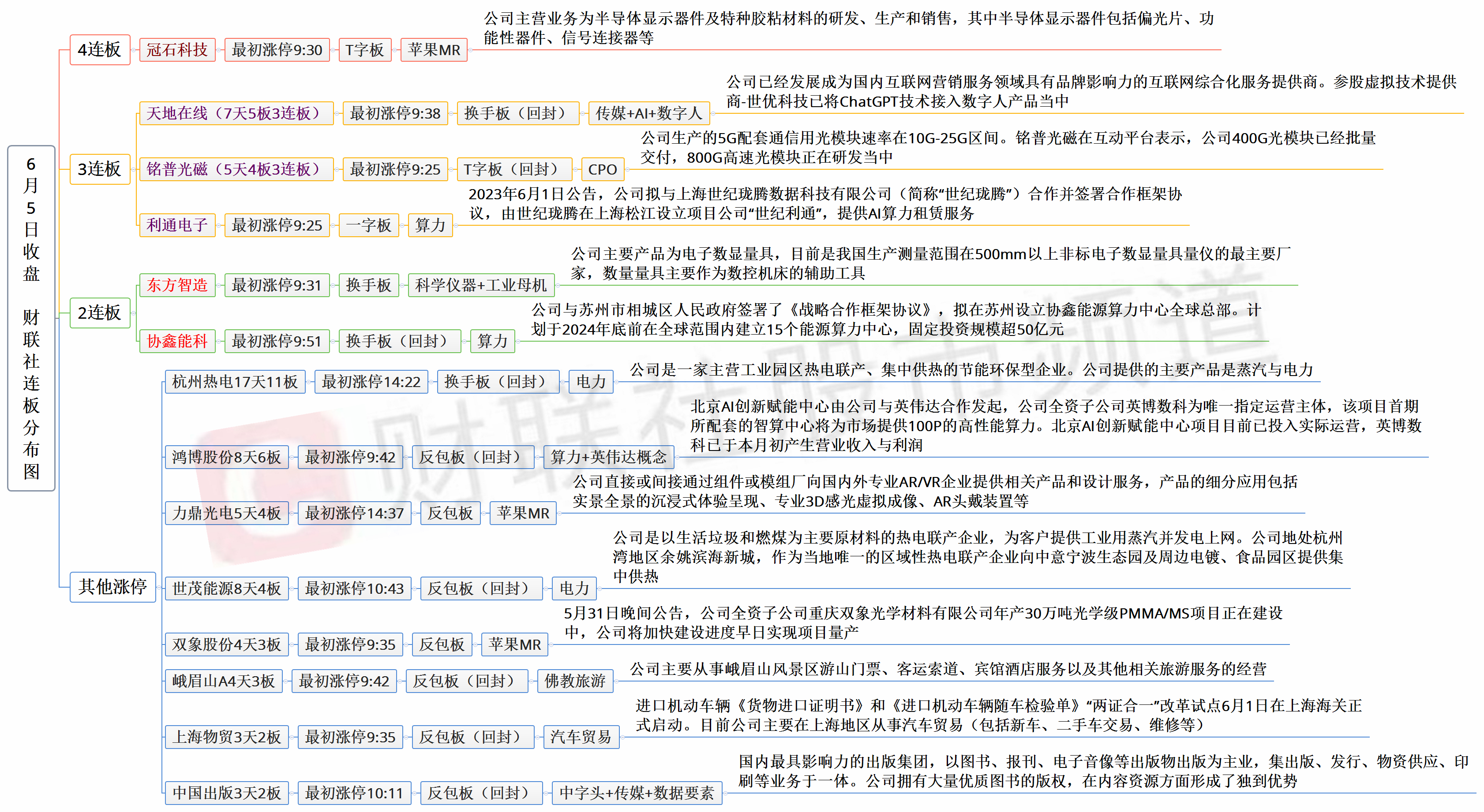 今日共45股涨停,连板股总数6只,其中三连板及以上个股4只,上一交易日共8只连板股,连板股晋级率50.00%(不含ST股、退市股及未开板新股)。个股方面,市场风险偏好有所修复,部分高位股表现亮眼,杭州热电17天11板,鸿博股份缩量反包,力鼎光电大幅低开后强势拉红,并在尾盘封板。板块方面,新能源赛道开盘领跌,宁德时代一度跌超5%,消费赛道同样跌幅居前,舍得酒业跌停;此消彼长,相当部分资金从旧赛道移仓AI新赛道,传媒、算力等AI软硬件持续上涨,受小冰公司网红明星“克隆人”上线消息刺激,虚拟数字人细分表现最强,天地在线7天5板,凡拓数创20CM涨停,恒信东方等涨超10%。
