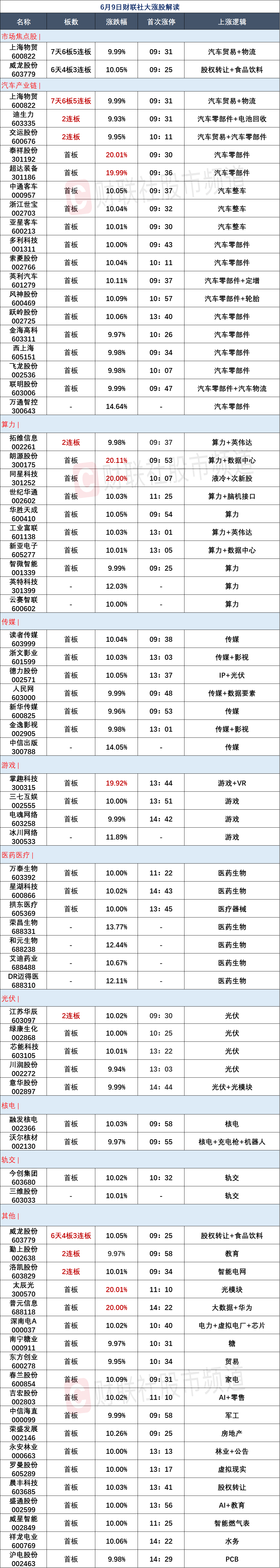 今日共64股涨停,连板股总数8只,7股封板未遂,封板率为90%(不含ST股、退市股及未开板新股)。个股方面,从事汽车贸易的上海物贸7天6板,光伏概念股江苏华辰5天4板,股权转让概念股威龙股份3连板,汽车产业链股迪生力、交运股份2连板,算力股拓维信息、教育股勤上股份、智能电网股洛凯股份2连板。今日收涨个股2682只,收跌个股2119只。