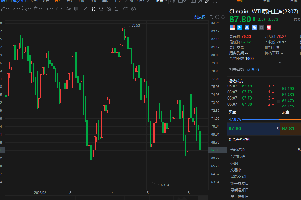 财联社6月12日电,国际原油期货快速走低,WTI原油期货跌幅扩大至3%,跌破68美元/桶。布伦特原油跌2.7%,报72.7美元/桶。